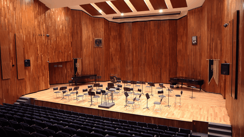 Av. Presidente Masaryk 582, Col. Polanco, CDMX Como proyecto arquitectónico de Mario Pani, fue inaugurado en marzo de 1949 dentro del Conservatorio Nacional de Música. Nombrado en honor al compositor Silvestre Revueltas, es un espacio clave en la formación musical de México.